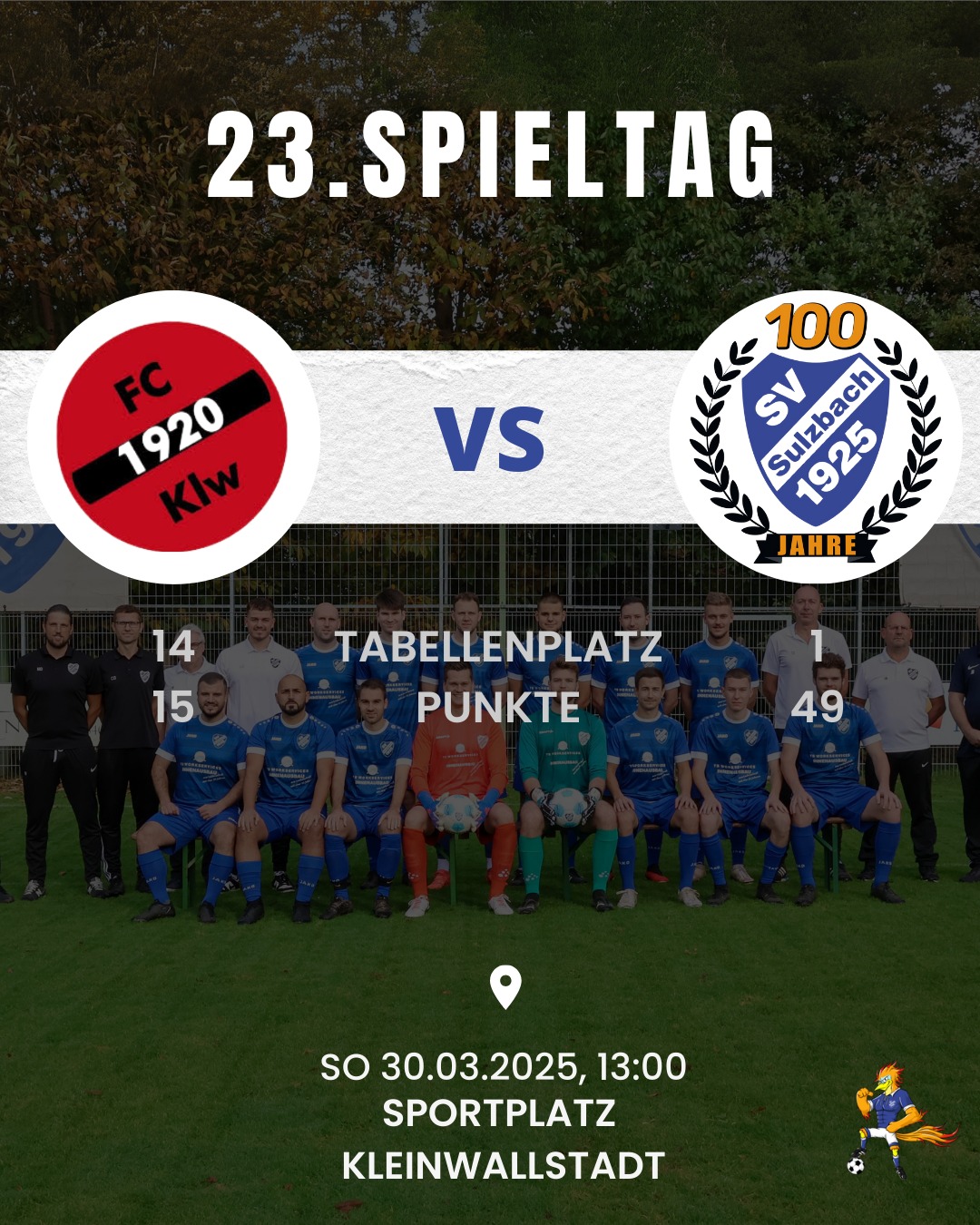 Sulzbach braucht euch im kleinen Derby: Kommt gerne wieder zahlreich nach Kleinwallstadt. Auch unsere zweite Mannschaft würde sich auf euren Support freuen.