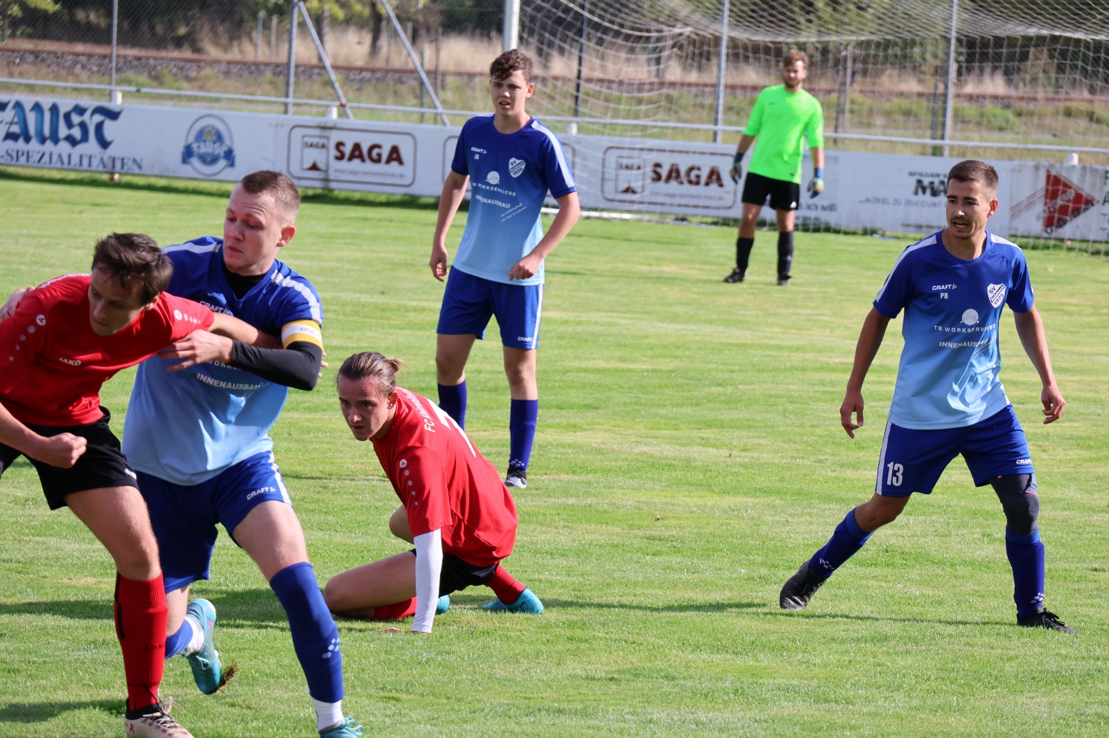 Unbeeindruckt vom frühen Rückstand hatten wir die direkte Antwort parat: Stefan Leginszki vollendete unhaltbar nach starker Vorarbeit und glich wenig später zum 1:1 aus. In der Folge entwickelte sich ein Spiel, in dem wir uns gut nach vorne kombinierten und uns weitere Chancen erarbeiteten. Doch auch die Gastgeber konnten durch ihre schnellen Gegenangriffe Akzente setzen und nutzten ihre Gelegenheiten aus, um noch vor der Halbzeit auf 3:1 zu erhöhen.