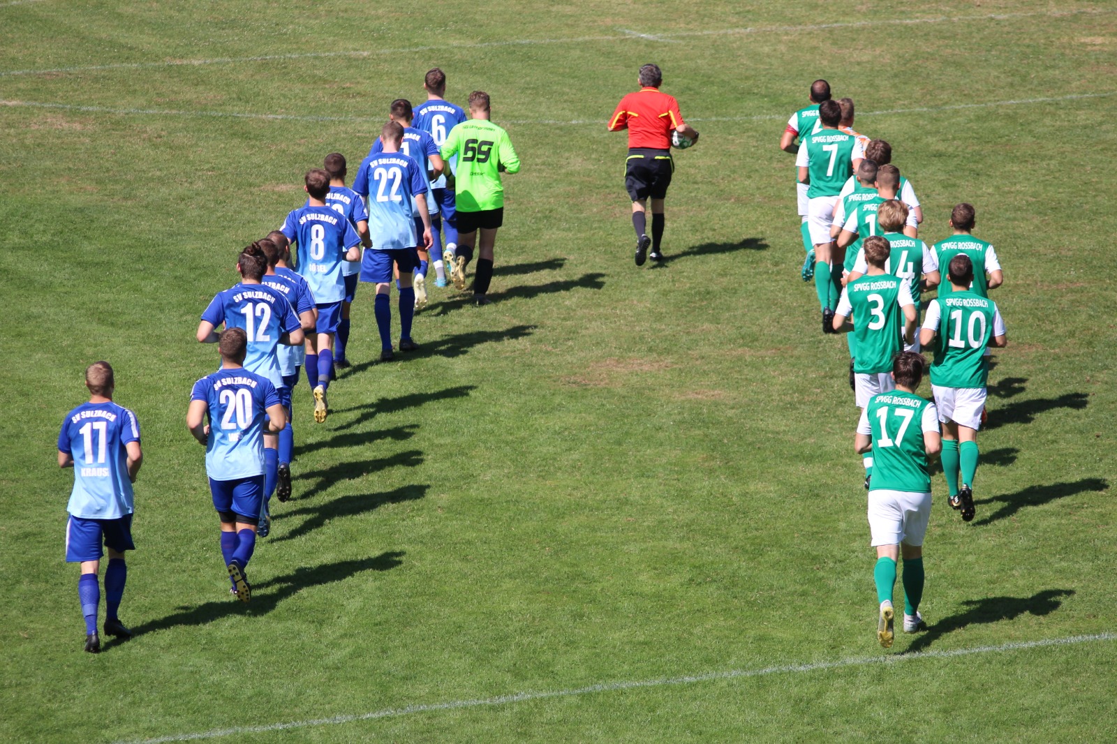 Im zweiten Spiel der diesjährigen Saison kam es für uns zum Derby mit der Mannschaft aus Roßbach. Zu Beginn des Spiels konnten wir unsere Vorgaben nur bedingt umsetzen und taten uns schwer, ins Spiel zu kommen. So kam es, wie es kommen musste: nach einem langen Ball der Gegner und einem Missverständnis in unserer Defensive gerieten wir bereits in der 18. Minute in Rückstand. Auch in der Folge hatten wir zwar meist den Ball, wussten uns jedoch nur bedingt in die gegnerische Spielhälfte und vors Tor zu kombinieren. Nach einem unserer Ballverluste im Aufbauspiel erzielten die Gastgeber in der 23. Minute den 2:0 Pausenstand. Nach dem Seitenwechsel versuchten wir das Spiel noch zu drehen und konnten durch einen Treffer von Niklas Göbel in der 49. Minute auf 2:1 verkürzen. Trotz weiterer hochprozentiger Chancen blieb uns ein weiterer Treffer verwehrt und wir mussten uns somit geschlagen geben.